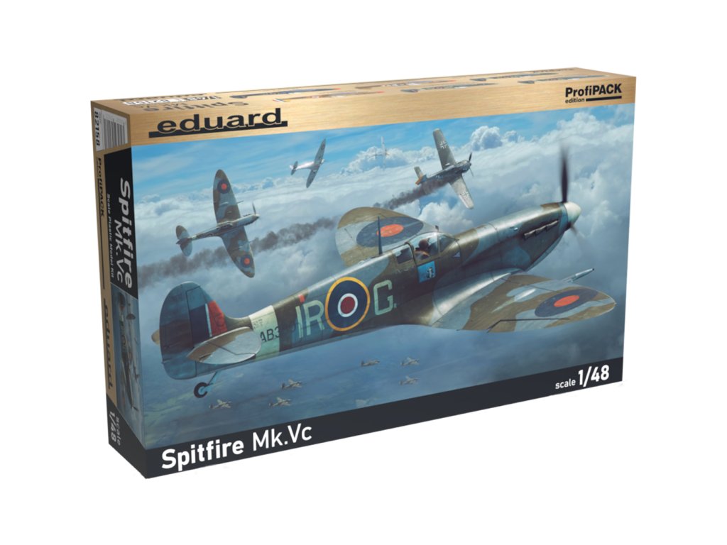 Eduard Spitfire Mk.Vc 1/48 to zestaw brytyjskiego myśliwca z czasów II wojny światowej, opracowany w edycji ProfiPACK ze szczegółowymi częściami plastikowymi.plastikowymi częściami, kolorowymi akcesoriami, maskami i kalkomaniami dla sześciu schematów kamuflażu. Zestaw nie zawiera farb ani kleju potrzebnych do montażu.