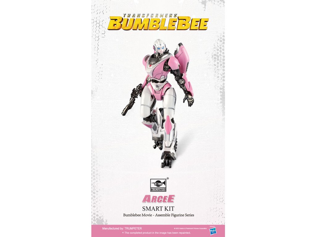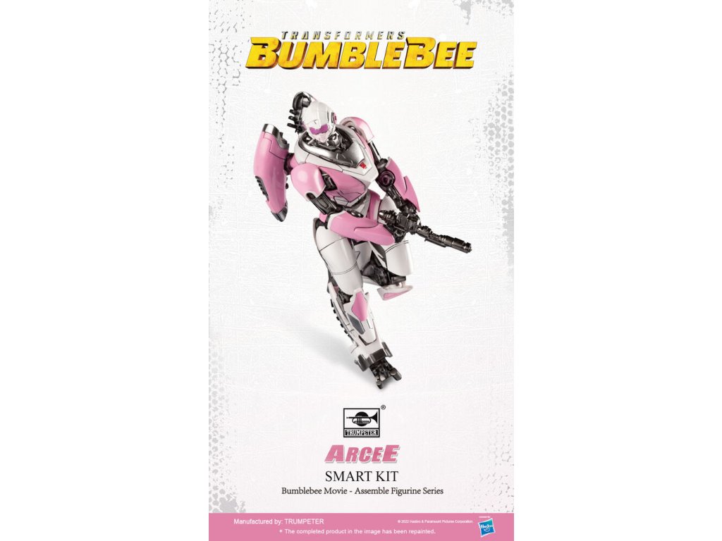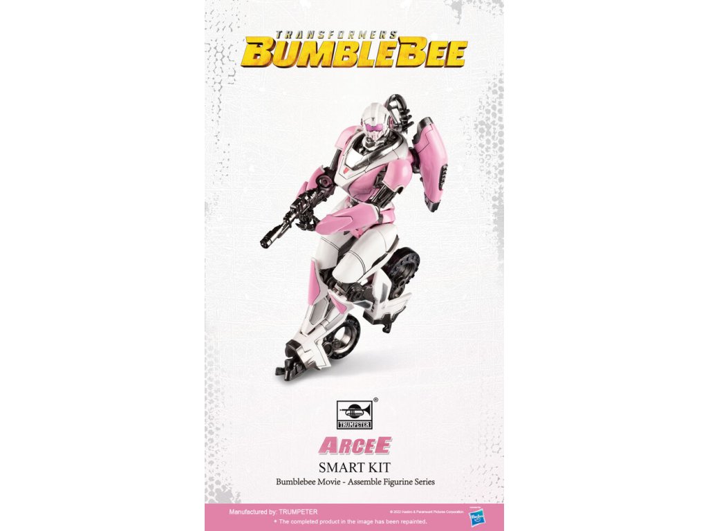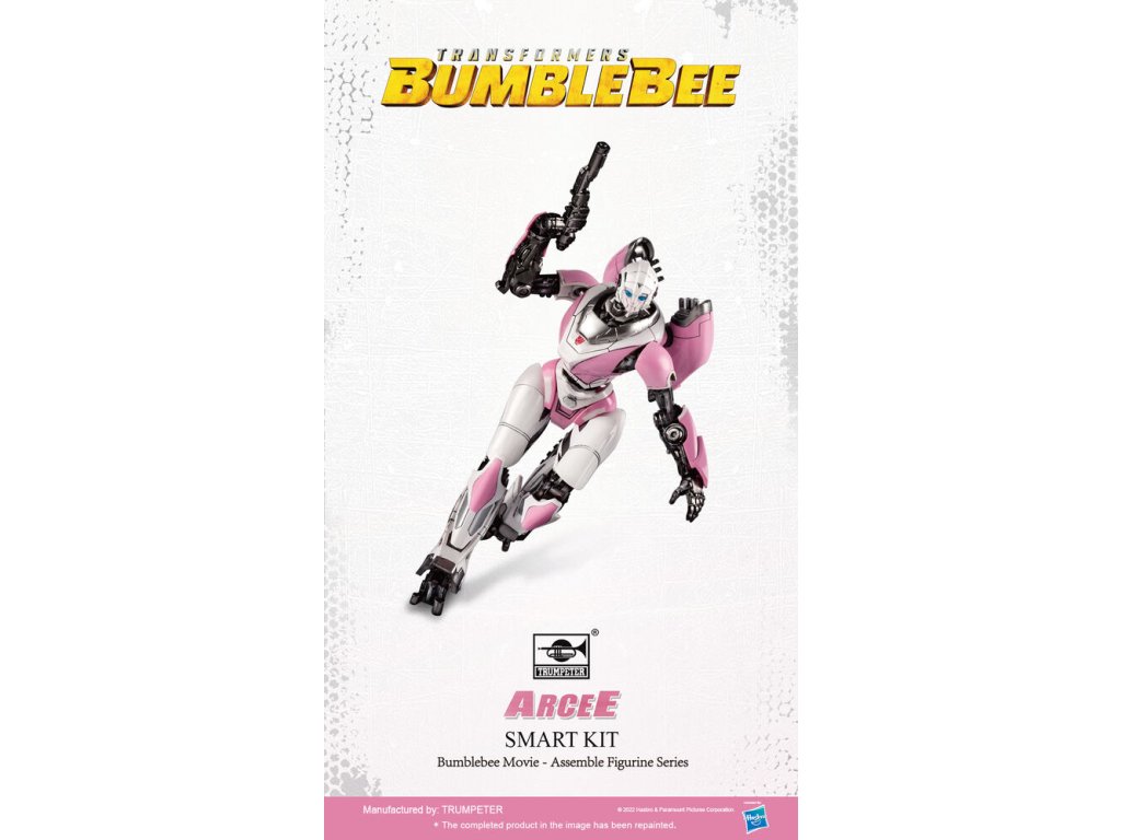 Plastikowy zestaw Arcee z Transformers 6: Bumblebee firmy Trumpeter. Model jest częścią serii Smart Kit - wstępnie pokolorowane części i prosty system zatrzaskowy zapewniają łatwą konstrukcję bez konieczności użycia kleju.