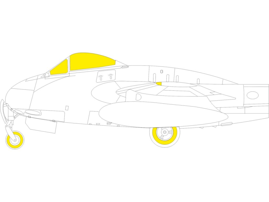 1/32 Messerschmitt P.1101 dwustronna (zewnętrzna i wewnętrzna) maska przezroczysta części i kół do zestawu Das Werk. Numer katalogowy ASK...