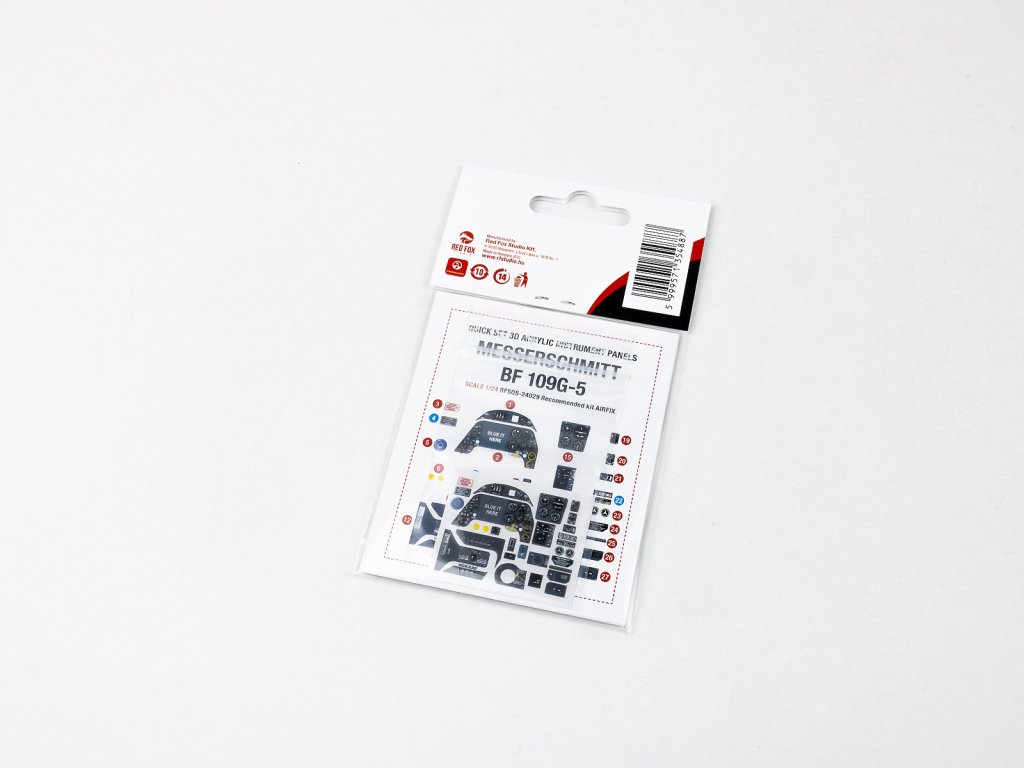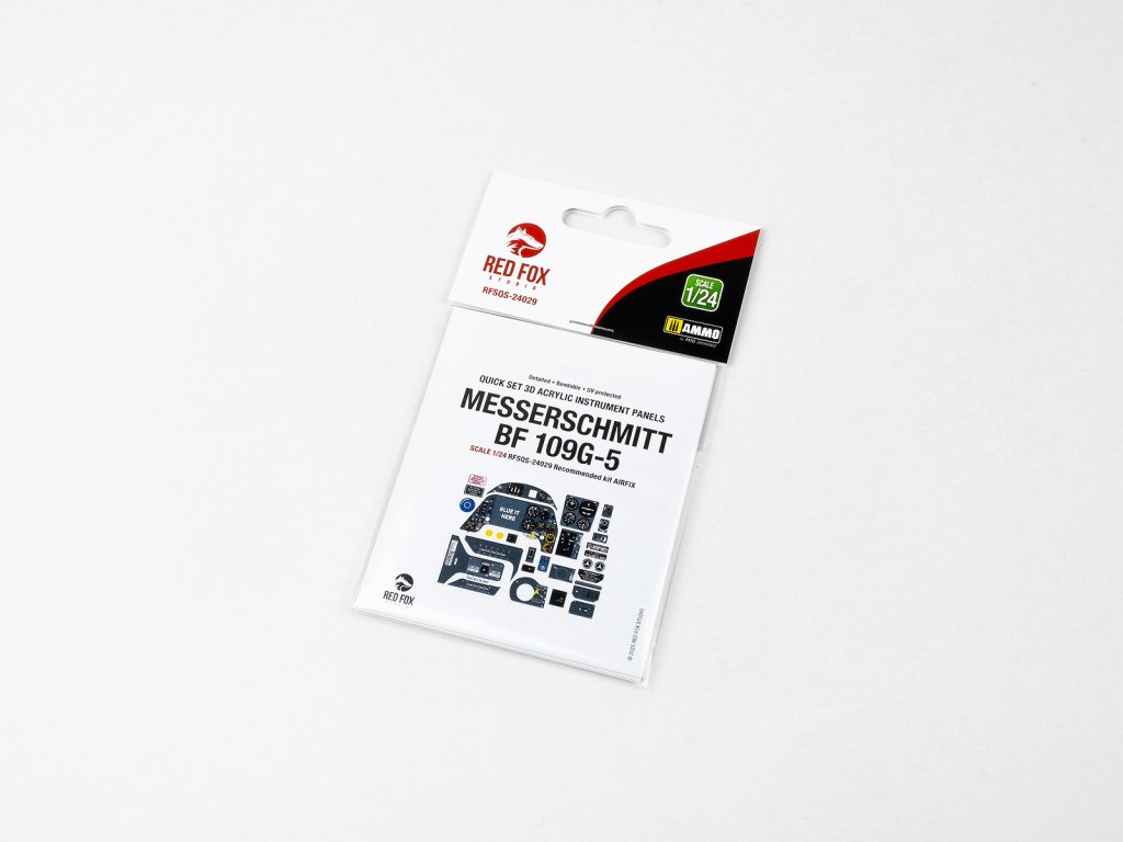 Red Fox Studio Quick Set Messerschmitt Bf 109G-5 je 3D barevný resinový přístrojový panel určený pro modely této verze legendární německé stíhačky. Nabízí výrazně vyšší úroveň detailu a realistickou hloubku oproti klasickým obtiskům či plastovým dílům a slouží jako přímá náhrada původního dílu ve stavebnici.