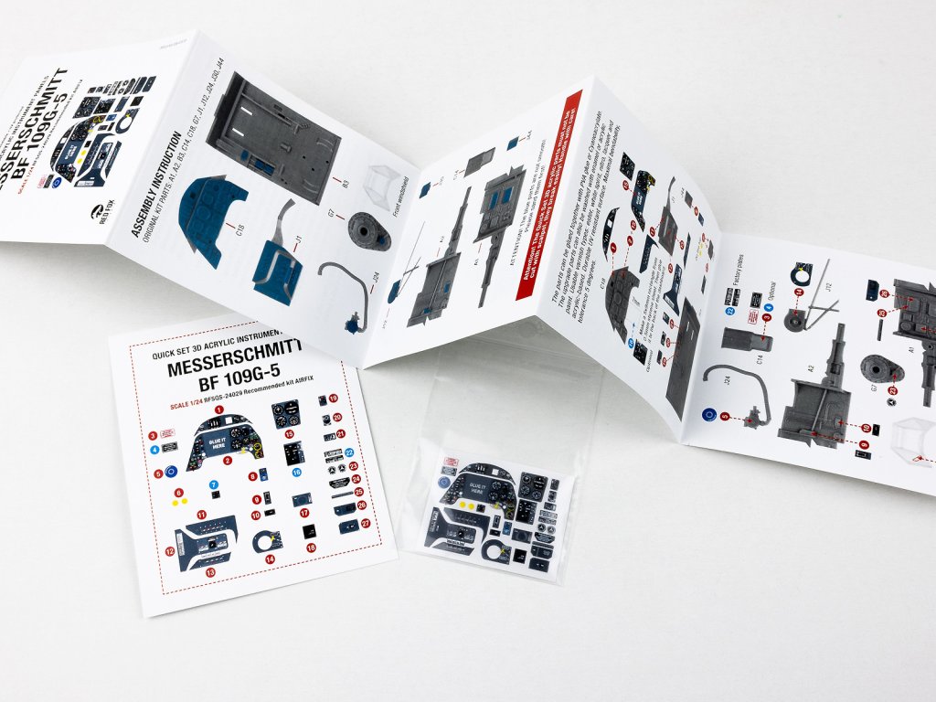 Kokpit letounu Messerschmitt Bf 109G-5 patří k vizuálně velmi výrazným částem modelu a právě přístrojová deska hraje klíčovou roli v celkovém dojmu z interiéru. Standardní plastové díly nebo obtisky často působí ploše a nedokážou plně zachytit složitost a jemnost skutečných přístrojů. Quick Set od Red Fox Studio tento problém řeší použitím moderní 3D technologie a plně barevného resinového tisku.