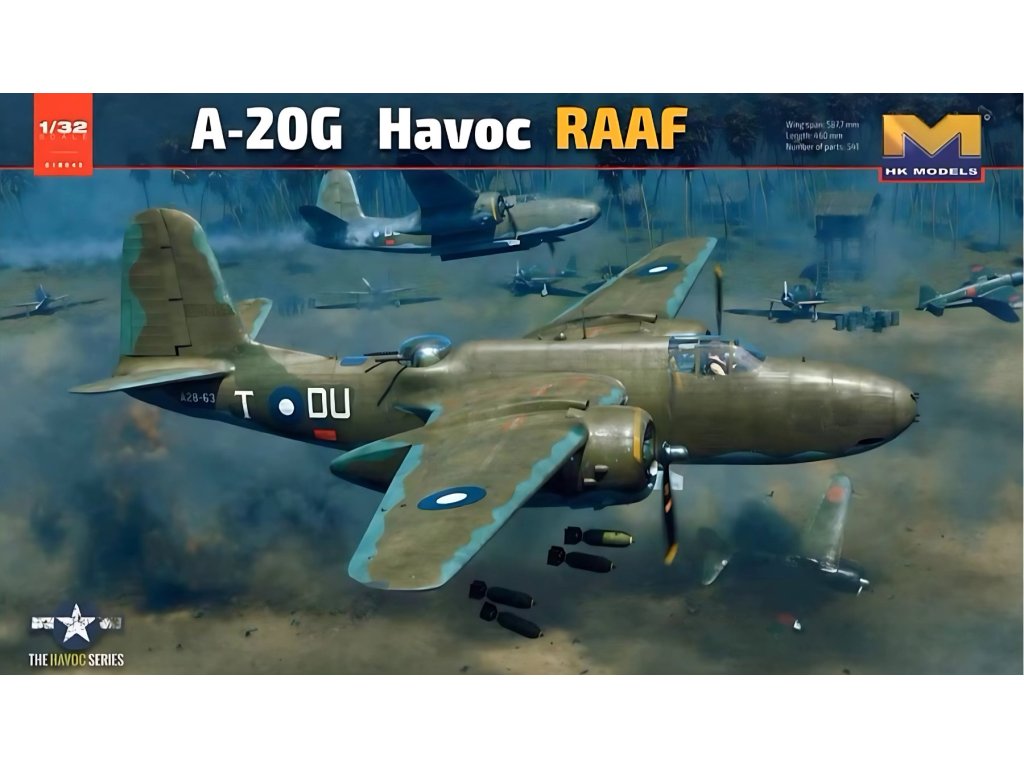 A-20G RAAF Havoc Master Version v mierke 1/32 od HK Models je austrálska verzia amerického útočného bombardéra Douglas A-20G Havoc, ktorý slúžil počas druhej svetovej vojny. Lietadlo sa používalo na hlbinné nálety a útoky na pozemné ciele v Tichomorskom divadle. Táto verzia obsahuje kovový podvozok a nosné závažia, aby bol model stabilnejší. Vďaka detailnému kokpitu, realistickým motorom a výzbroji je to skvelá voľba pre náročných modelárov. Balenie neobsahuje farby ani lepidlo potrebné na zostavenie. Upozorňujeme, že táto verzia neobsahuje kovové hlavne.