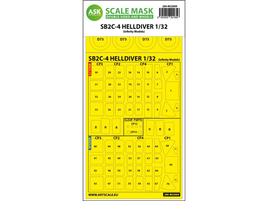SB2C-4 Helldiver 1/32 č. 200-M32009 - plastový list v mierke 1/32 pre Infinity. Predrezaná maska pre číre diely a kolesá. Vynikajúca kvalita, najlepšia technologická výroba prierezu fólie, obojstranná maska. Určené na: maľovanie - airbrush. Všetky diely masky sú potlačené číslami, ktoré spolu s návodom jednoznačne identifikujú maskované miesto na čírych a ostatných dieloch plastového modelu.