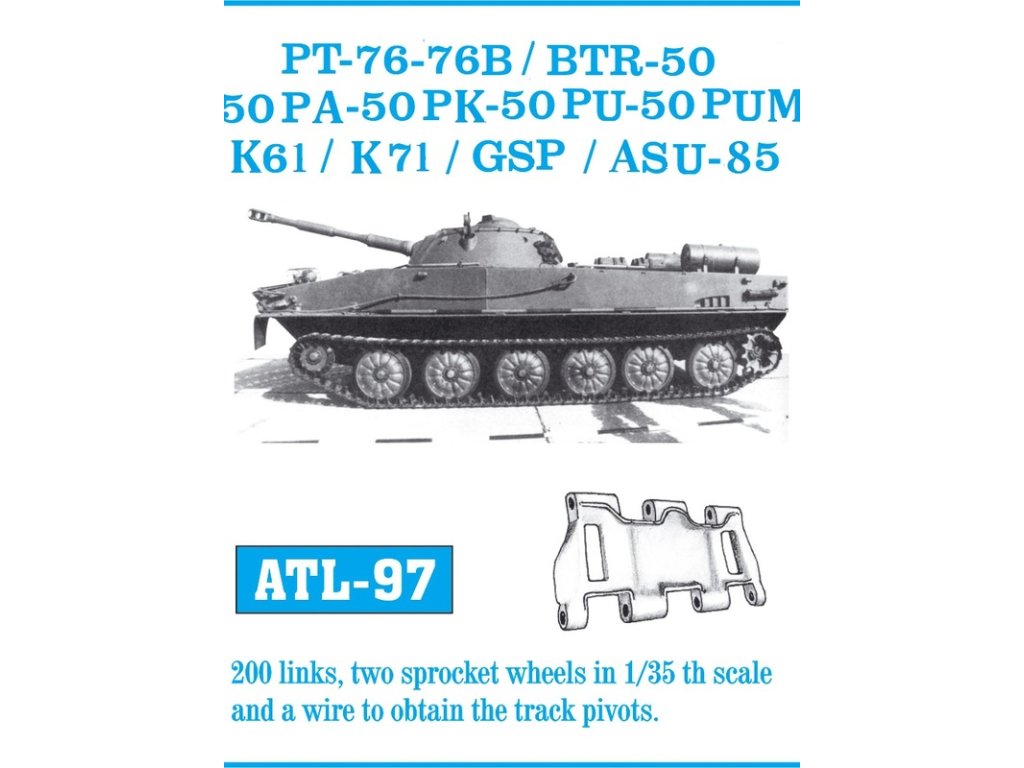 1/35 ATL-097 PT-76 – 76B / BTR-50 – 50P – 50PA – 50PK – 50PU – 50PUM / K-61 / K-71 / GSP / ASU-85 -