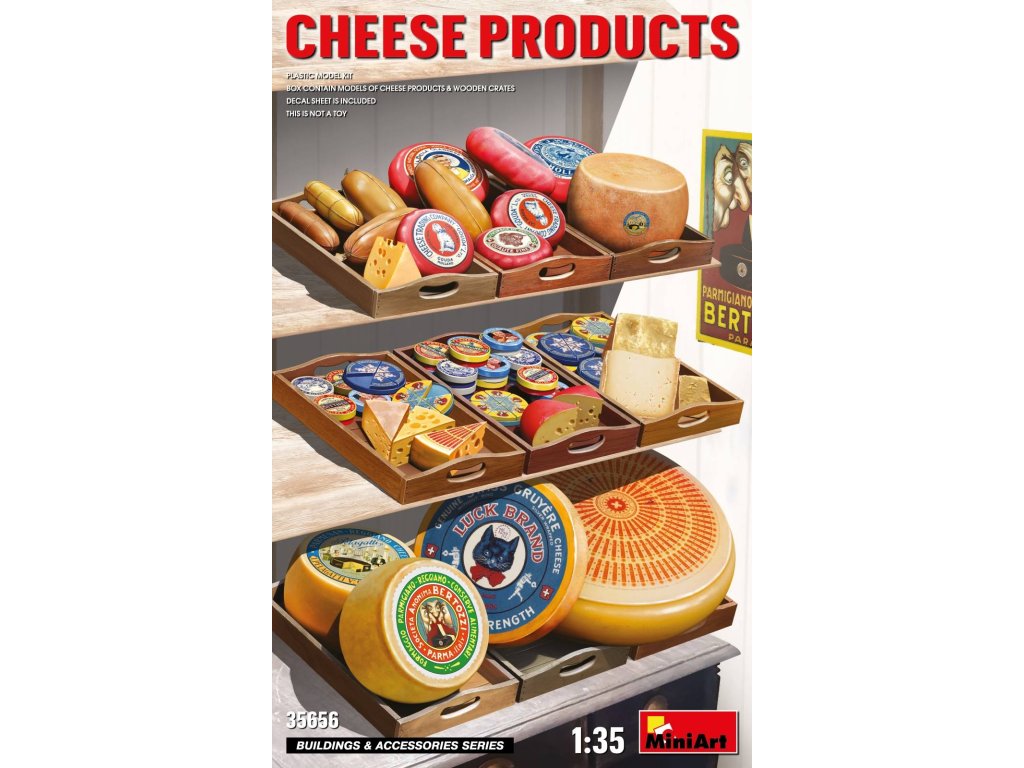 Sýrové výrobky 1/35 od MiniArtu je detailná sada rôznych syrov určená na doplnenie diorám s civilnou alebo trhovou tematikou. Balenie neobsahuje farby ani lepidlo potrebné na zostavenie.