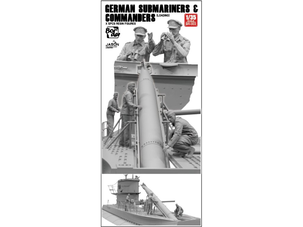 Border Model 1/35 German Submarines & Commanders (Loading) je sada piatich detailných figúrok nemeckej Kriegsmarine z druhej svetovej vojny. Figúrky zobrazujú posádku, ktorá nakladá zásoby a velí na palube. Balenie neobsahuje farby ani lepidlo potrebné na zostavenie.