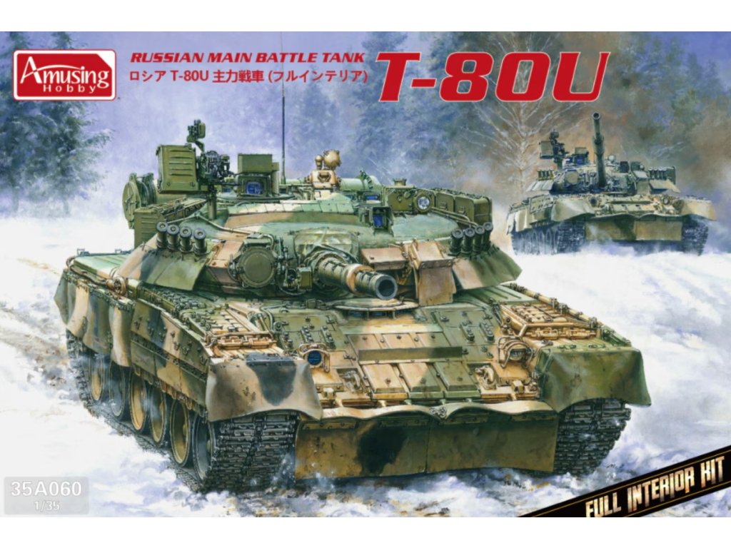 Táto stavebnica ruského hlavného bojového tanku T-80U v mierke 1/35 od spoločnosti Amusing Hobby obsahuje detailne spracovaný interiér vrátane motorového priestoru, priestoru pre posádku a automatického nabíjacieho systému. Súčasťou sú fotoleptané diely, 3D tlačené diely, funkčné pásy a nylonový drôt na ťažné laná. Model neobsahuje lepidlo ani farby.