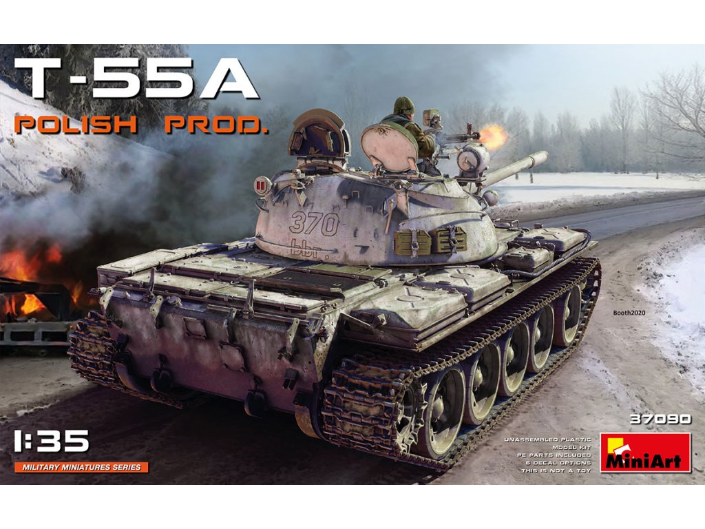 Model T-55A Polish Production v mierke 1/35 od MiniArtu je licencovanou verziou sovietskeho stredného tanku T-55A vyrábaného v Poľsku. Stavebnica obsahuje detailné plastové diely vrátane interiéru, motorového priestoru a výzbroje. Balenie neobsahuje farby ani lepidlo potrebné na zostavenie.