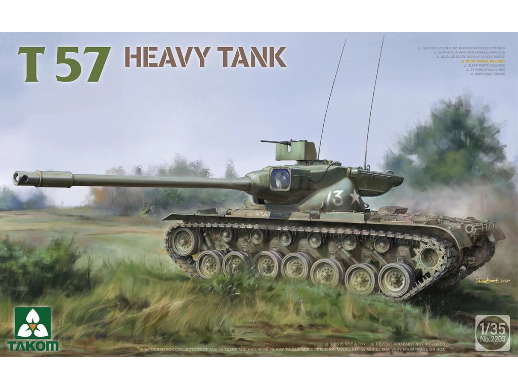 Stavebnica Takom 1/35 T57 Heavy Tank je modelom amerického ťažkého tanku, ktorý vznikol v 50. rokoch 20. storočia ako odpoveď na hrozbu sovietskej ťažkej obrnenej techniky. T57 bol koncipovaný ako výkonný nástupca tanku T43 (neskôr M103), vybavený kanónom kalibru 120 mm a unikátnou vežou pre posádku s automatickým nabíjačom. Napriek sľubným parametrom bol vývoj T57 v roku 1957 zrušený a tank sa nikdy nedostal do sériovej výroby.