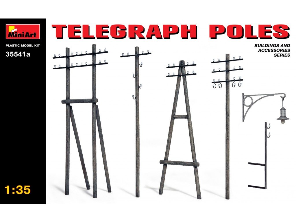 Sada telegrafných stĺpov 1/35 od spoločnosti MiniArt ponúka realistické telegrafné stĺpy na použitie vo vojenských a civilných diorámach. Balenie neobsahuje farby ani lepidlo potrebné na montáž.
