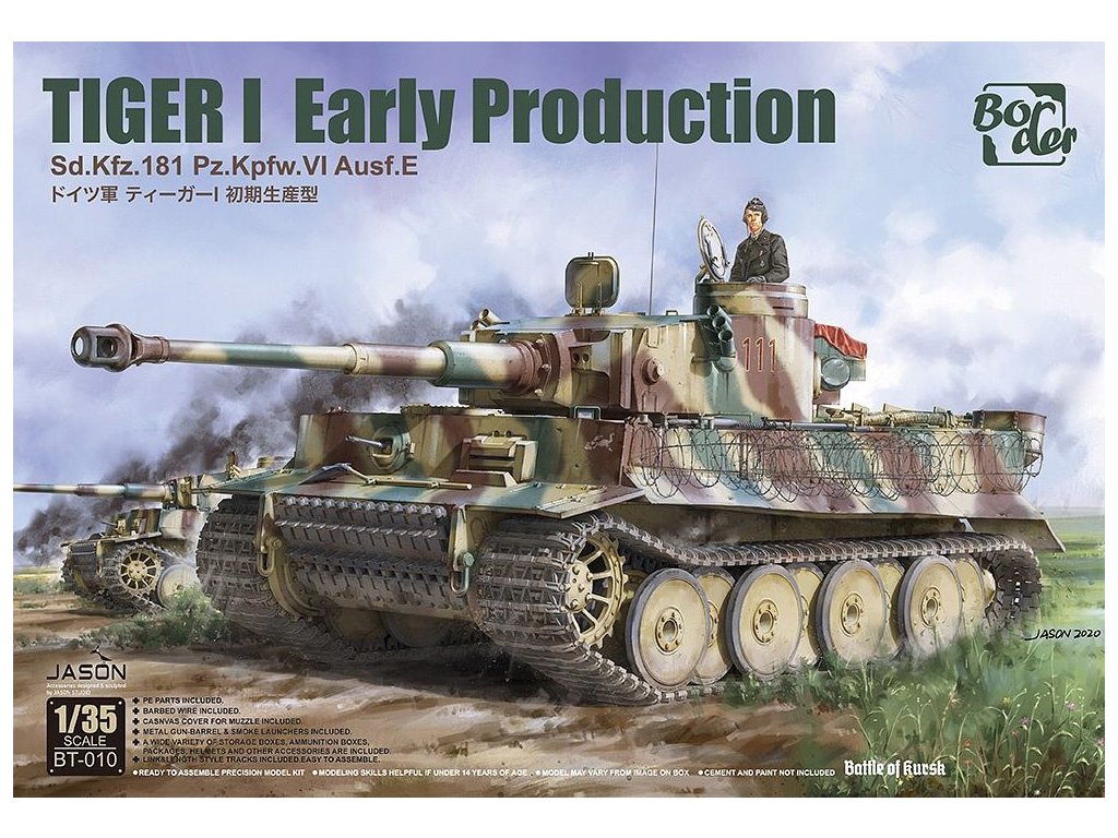 Border Model 1/35 Tiger I Early Production Sd.Kfz.181 Pz.Kpfw.VI Ausf.E je model slávneho nemeckého ťažkého tanku z ranej fázy výroby, ktorý bol od roku 1942 nasadený na východnom fronte a v severnej Afrike. Balenie neobsahuje farby ani lepidlo potrebné na zostavenie.