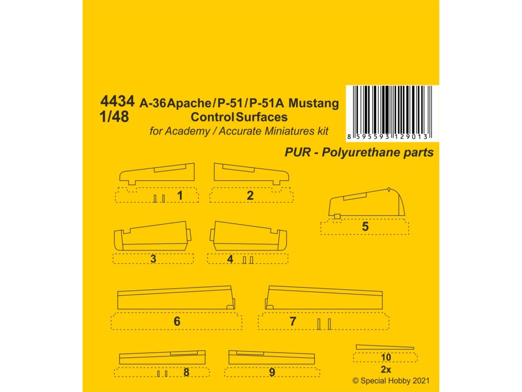 1/48 A-36 Apache / P-51 / P-51A Mustang Control Surfaces