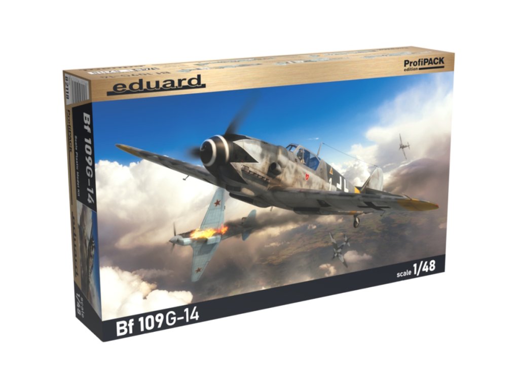 Eduard Bf 109G-14 1/48 je stavebnica nemeckého stíhacieho lietadla z konca druhej svetovej vojny. Edícia ProfiPACK s detailnými plastovými dielmi, farebným leptaným príslušenstvom, maskami a obtlačkami pre päť kamuflážnych schém. Balenie neobsahuje farby ani lepidlo potrebné na zostavenie.