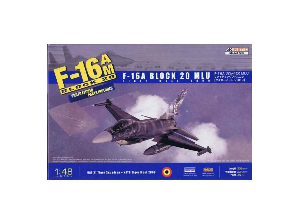 Kinetic 1/48 F-16AM Block 20 je model modernizovanej verzie slávneho viacúčelového stíhacieho lietadla F-16 Fighting Falcon, ktoré používajú vzdušné sily NATO a mnohých európskych krajín. Stavebnica ponúka detailné spracovanie, jemne gravírované povrchy a atraktívnu kamufláž. Balenie neobsahuje farby ani lepidlo potrebné na zostavenie.