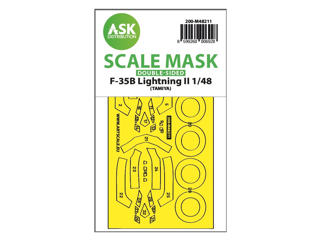F-35B Lightning II 1/48 obojstranná samolepiaca maska z čírych dielov a kolies pre stavebnicu Tamiya. Katalógové číslo ASK Distribution: 200-M48211