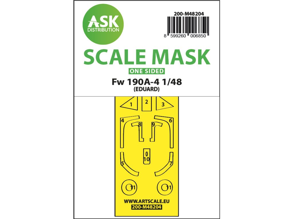 Jednostranná samolepiaca maska z čírych dielov a kolies pre stavebnicu Eduard 1/48 Fw 190A-4. Katalógové číslo ASK Distribution: 200-M48204