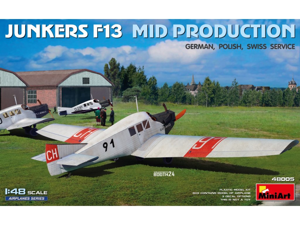 Model Junkers F13 Mid Prod. Model v mierke 1/48 od MiniArtu predstavuje prvé celokovové dopravné lietadlo na svete, ktoré bolo vyvinuté po prvej svetovej vojne a stalo sa priekopníkom moderného civilného letectva. Slúžilo vo viacerých krajinách vrátane Nemecka, Poľska a Švajčiarska. Stavebnica obsahuje detailné plastové diely, realistický interiér a obtlačky pre rôzne historické verzie. Balenie neobsahuje farby ani lepidlo potrebné na zostavenie.