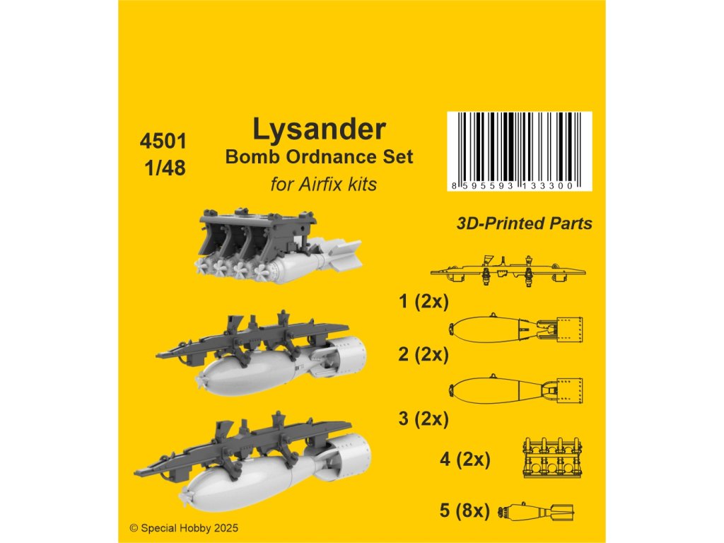 Stavebnica Lysander Bomb Ordnance Set od CMK v mierke 1/48 pre stavebnicu Airfix. Sada obsahuje kompletnú výzbroj pre ozbrojenú verziu britského lietadla Westland Lysander - detailné bomby, závesníky a drobné príslušenstvo, ktoré modelu dodajú autentický bojový vzhľad.
