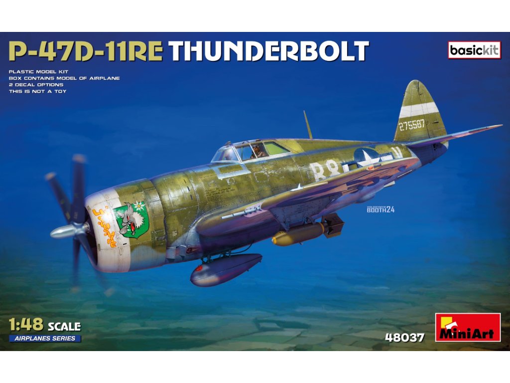 MiniArt P-47D-11RE Thunderbolt 1/48 je základná edícia modelu amerického stíhacieho lietadla z druhej svetovej vojny s dôrazom na presné detaily a kvalitné spracovanie. Balenie neobsahuje farby ani lepidlo potrebné na zostavenie.