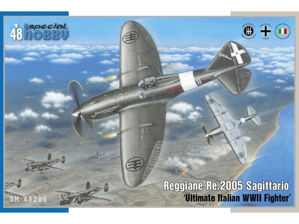 Stavebnica Special Hobby 1/48 Reggiane Re.2005 "Ultimate Italian WWII Fighter" ponúka verné zobrazenie tejto elegantnej a vzácnej stíhačky. Stavebnica obsahuje detailný trup, kokpit, podvozok a výzbroj. Súčasťou sú obtlačky pre viaceré stroje Regia Aeronautica vrátane typickej zelenej a hnedej kamufláže.
