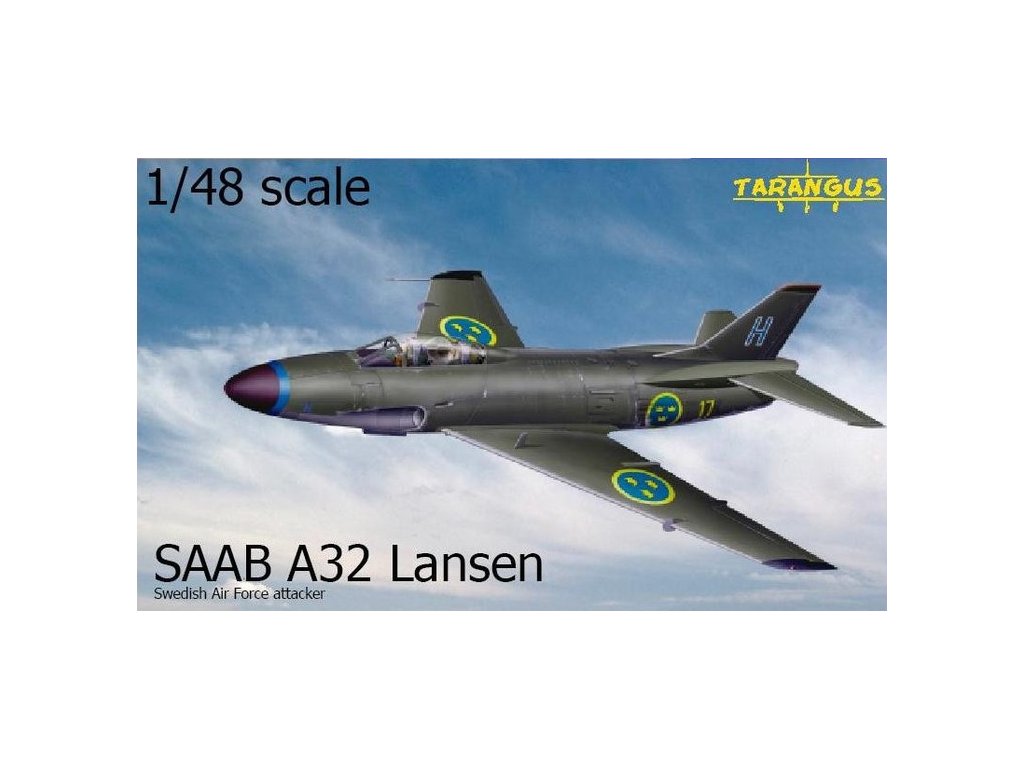 Detailná stavebnica kultového švédskeho dvojmiestneho útočného a protilodného lietadla A 32A Lansen v mierke 1/48 od spoločnosti Tarangus. A 32A bolo prvé prúdové lietadlo SAAB schopné lietať za každého počasia a kľúčový prvok švédskej pobrežnej obrany. Model je vysokokvalitný krátky model s jemnými detailmi, často s rezinovými doplnkami (sedadlami) pre realistické zobrazenie kokpitu.