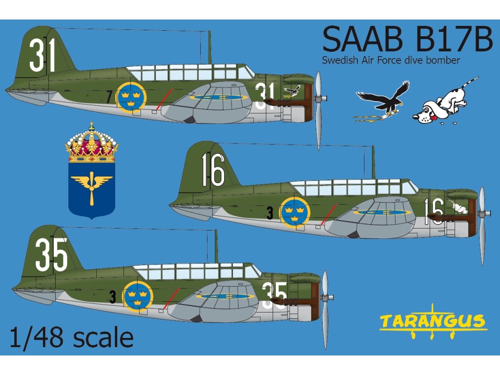 Stavebnica švédskeho stíhacieho bombardéra Saab B 17B v mierke 1:48. Ide o vôbec prvé sériovo vyrábané lietadlo spoločnosti SAAB, ktoré sa preslávilo jedinečným použitím podvozku ako aerodynamickej brzdy.