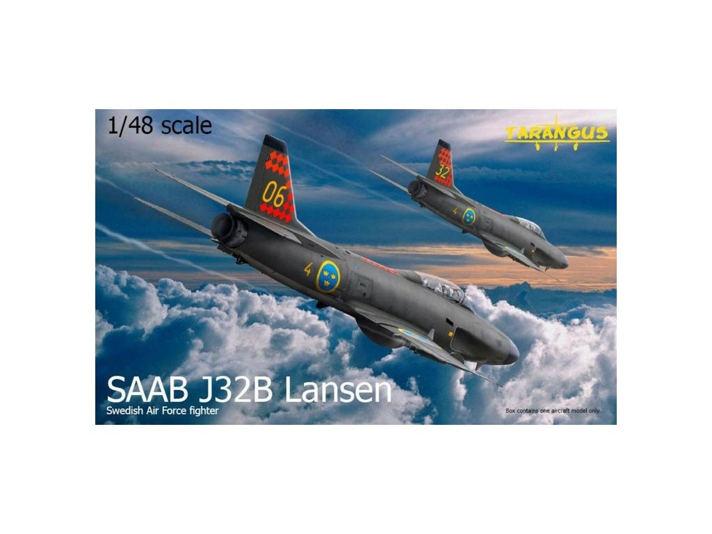 Stavebnica výkonného stíhacieho lietadla J 32B Lansen, prezývaného "Lansen Sport", v mierke 1/48. Tento variant bol kľúčovou dvojmiestnou prepadovou stíhačkou švédskeho letectva s motorom RM6A a mohutnou výzbrojou štyroch 30 mm kanónov ADEN. Vysoko detailný model od spoločnosti Tarangus.