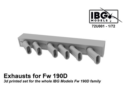 IBG 1/72 Exhausts for Fw 190D family je 3D tlačená doplnková sada výfukov pre stíhacie lietadlo Focke-Wulf Fw 190D v mierke 1/72. Umožňuje nahradiť...