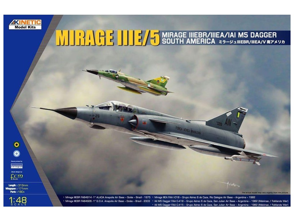 Kinetic 1/48 South American Mirage IIIE/V je model francúzskeho nadzvukového stíhacieho lietadla Mirage IIIE a jeho exportnej verzie Mirage V, ktoré tvorili základ juhoamerického letectva počas studenej vojny. Balenie neobsahuje farby ani lepidlo potrebné na zostavenie.