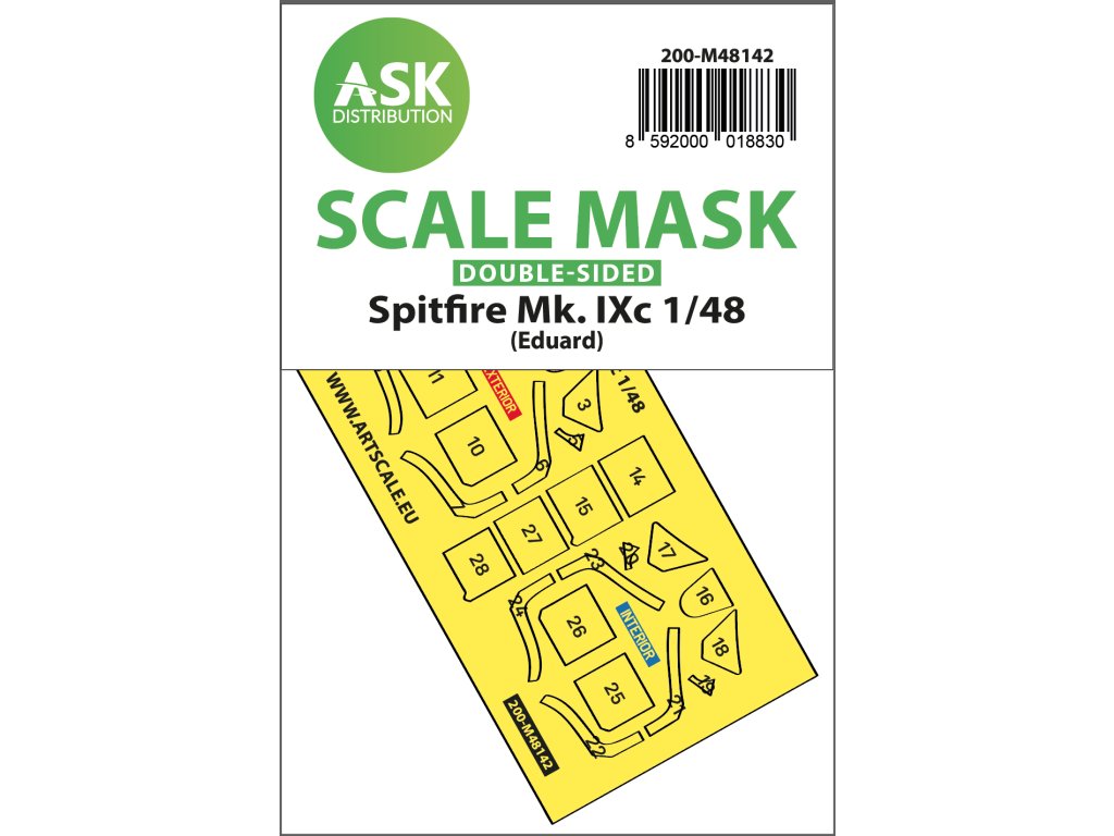Obojstranná samolepiaca maska 1/48 Spitfire Mk.IXc z čírych dielov pre stavebnicu Eduard. Katalógové číslo 200-M48142. Predseknutá fólia Kabuki maska najvyššej kvality, najlepšia technologická výroba prierezu fólie. Všetky diely masky potlačené číslami, ktoré spolu s návodom určujú presnú polohu, môžua aplikáciu na maskovaný model - veľké uľahčenie práce vedúce k dokonalému modelu.