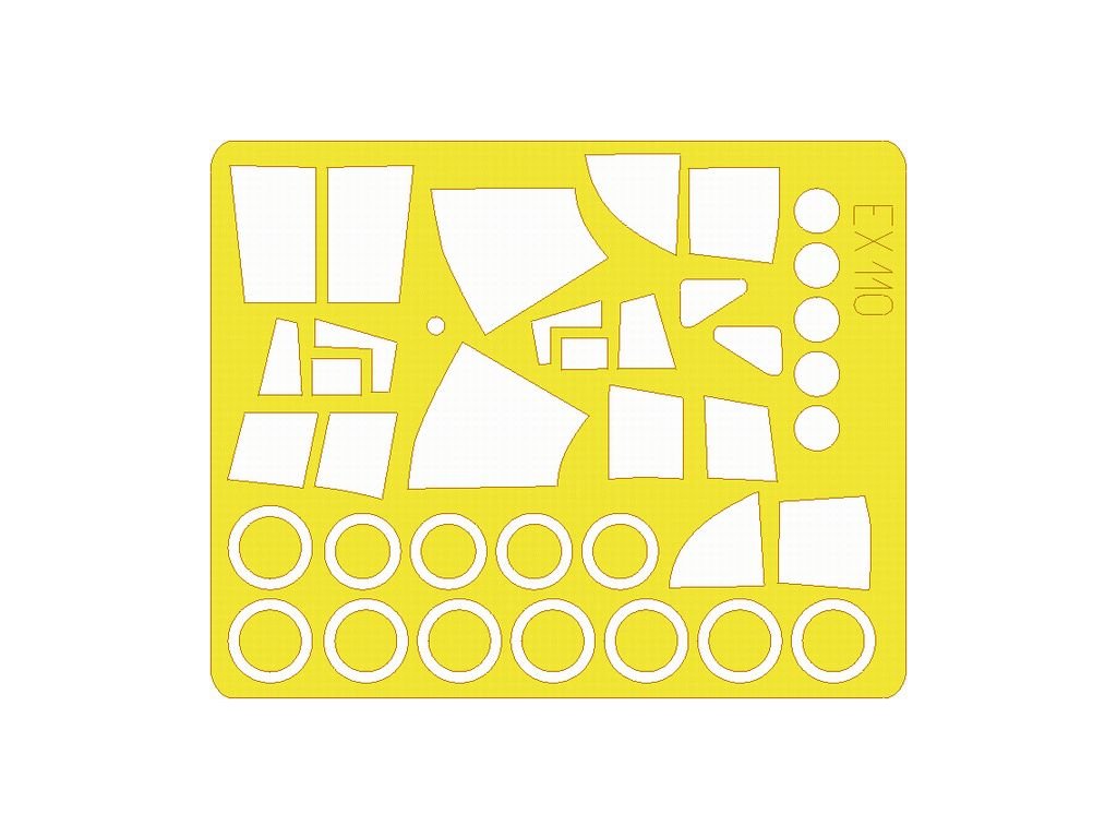 Jednostranná samolepiaca maska z čírych dielov a kolies pre stavebnicu Eduard 1/48 F6F-3 Hellcat. Katalógové číslo ASK Distribution: 200-M48200...