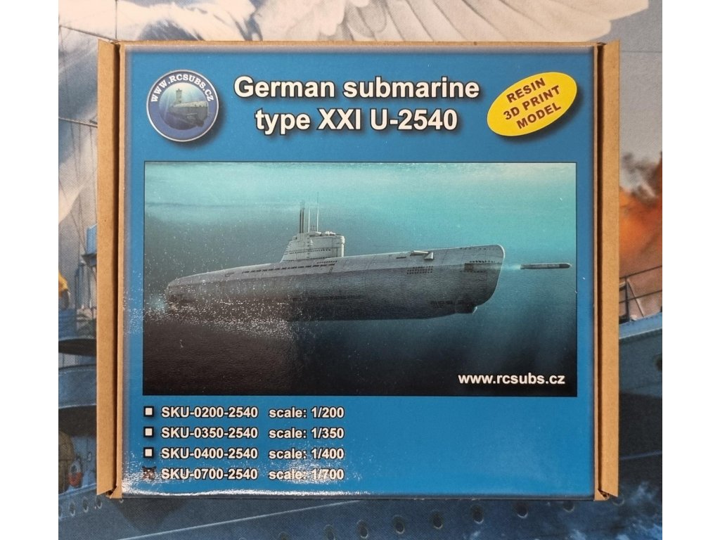 RCsubs Nemecká ponorka Typ XXI U-2540 1/700 je vysoko detailná resinová stavebnica nemeckej ponorky Typ XXI z konca druhej svetovej vojny s precízne vymodelovaným trupom, detailnou vežou a možnosťou odkryť interiér. Balenie neobsahuje farby ani lepidlo potrebné na zostavenie.