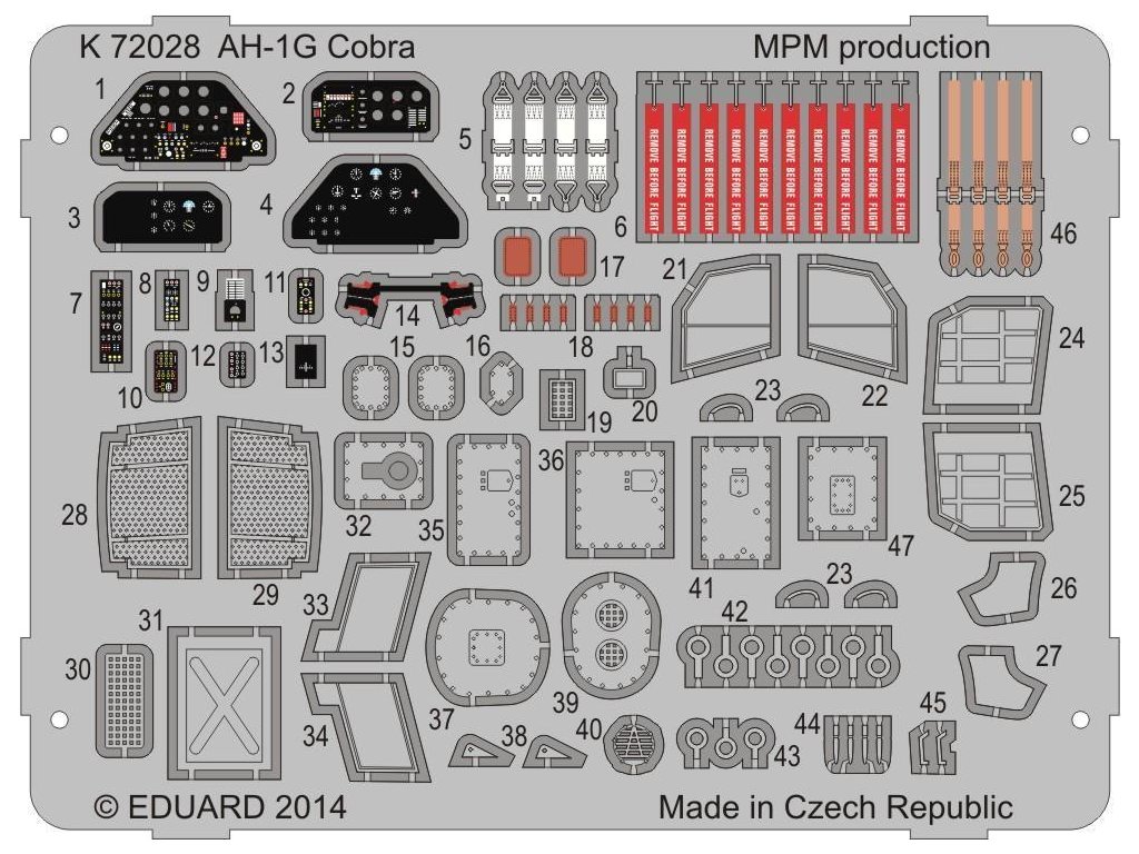 Farebné fotoleptané diely AH-1G Cobra 1/72 od Special Hobby umožňujú modelárom dosiahnuť maximálnu úroveň detailov pri stavbe tohto ikonického vrtuľníka. Balenie neobsahuje farby ani lepidlo.