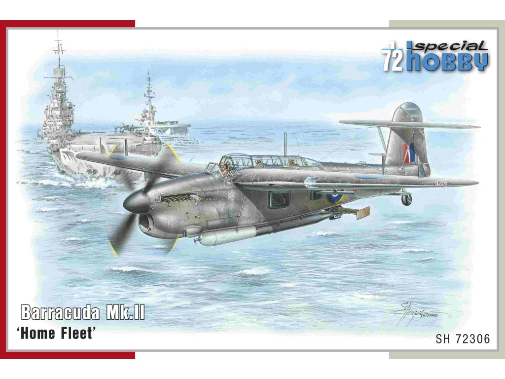 Reedícia vypredaného modelu Fairey Barracuda Mk.II v mierke 1/72. Stavebnica obsahuje plastové a priehľadné diely, závesy na krídla a ponúka možnosť výberu torpédovej alebo 1600 librovej bombovej výzbroje. Obtlačky obsahujú dva kamuflážne varianty lietadla nasadeného v Atlantiku, z ktorých jeden je zdobený kresbou na nose. Stavebnica neobsahuje farby ani lepidlo.