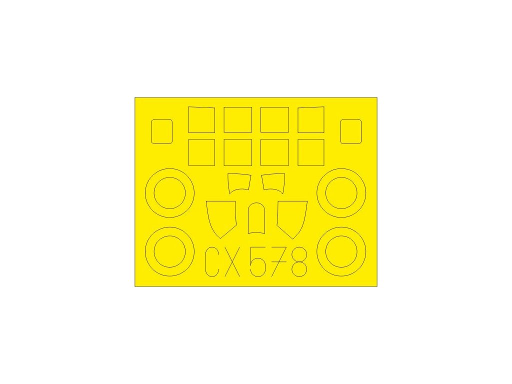 Jednostranná samolepiaca maska z priehľadných dielov a kolies pre stavebnicu Academy 1/48 PV-1 Ventura. Katalógové číslo 200-M48152 Predseknutá...