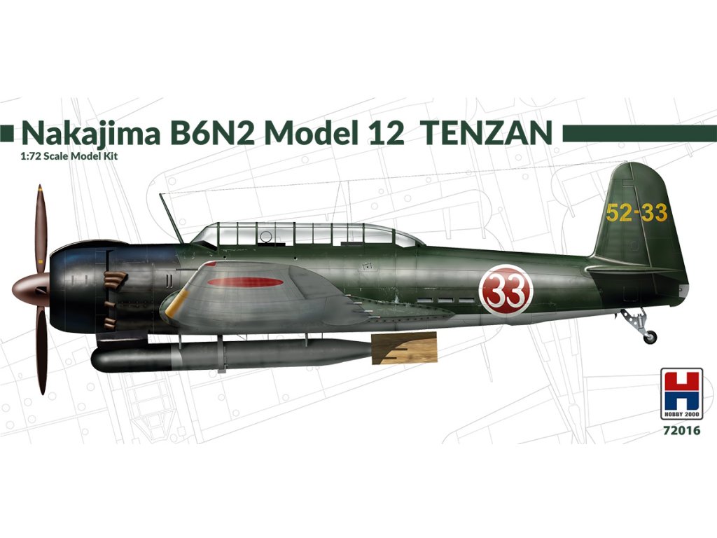 Hobby 2000 1/72 Nakajima B6N2 Model 12 Tenzan je japonský torpédový bombardér z druhej svetovej vojny. Verzia B6N2 bola nasadená od roku 1944 a zúčastnila sa záverečnej fázy vojny v Tichomorí. Stavebnica ponúka detailné stvárnenie tohto lietadla v autentickom značení. Balenie neobsahuje farby ani lepidlo potrebné na zostavenie.