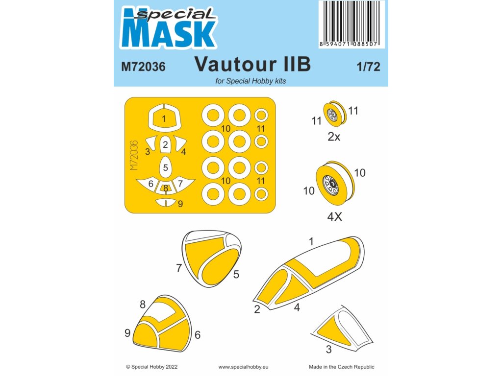 Táto sada maskovacích šablón pre model Vautour IIB v mierke 1/72 od spoločnosti Special Hobby vám umožní presne zamaskovať kokpit a ďalšie priehľadné časti modelu počas maľovania. Šablóny presne zodpovedajú tvarom skla, uľahčujú nanášanie farby a zabezpečujú ostré línie farby. Vyrobené z vysokokvalitného materiálu, ktorý sa ľahko aplikuje a odstraňuje. Balenie neobsahuje farby ani lepidlá potrebné na montáž.