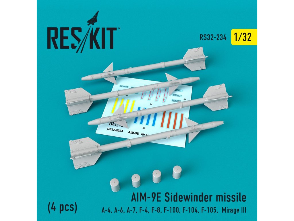 AIM-9E Sidewinder missiles (4 pcs) (A-4, A-6, A-7, F-4, F-8, F-100, F-104, F-105, Mirage III) (1/32