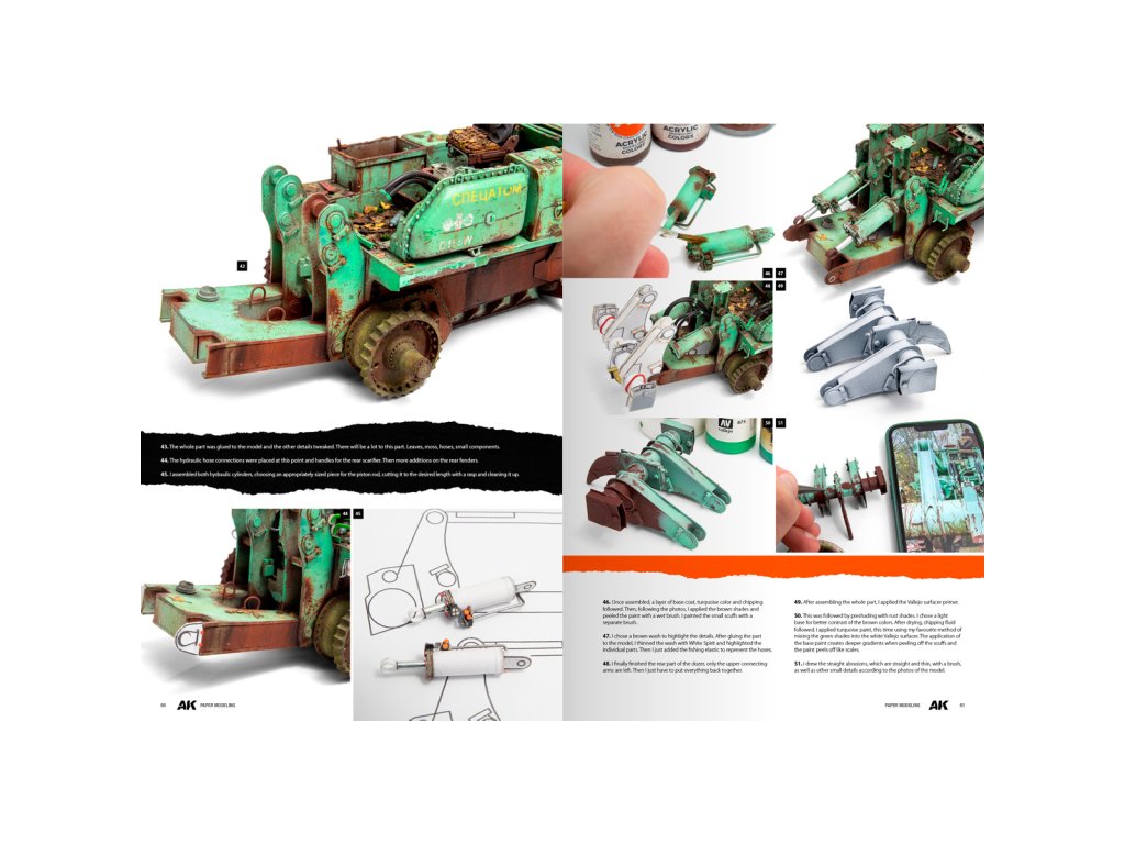 Táto kniha vás prekvapí, aj keď sa papierovému modelárstvu nevenujete. Predstavuje históriu papierových modelov, najvýznamnejšie značky a ich zberateľskú hodnotu. Obsahuje podrobné návody krok za krokom od jedného z najlepších umelcov v tejto oblasti. Techniky maľovania a patinovania sú porovnateľné s technikami používanými na plastových modeloch.