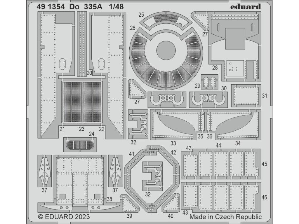Sada fotoleptaného príslušenstva pre Vampire F Mk.3 v mierke 1/72 od Special Hobby. Balenie neobsahuje farby ani lepidlo potrebné na montáž.
