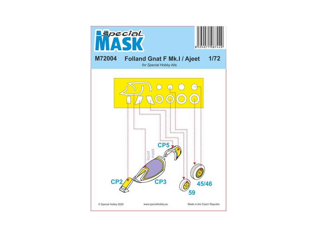 Táto sada maskovacích šablón v mierke 1/72 pre Folland Gnat/Ajeet od Special Hobby vám umožní presne zamaskovať kokpit a ďalšie priehľadné časti stavebnice počas maľovania. Šablóny presne zodpovedajú tvarom skla, uľahčujú nanášanie farby a zabezpečujú ostré línie farby. Vyrobené z vysokokvalitného materiálu, ktorý sa ľahko aplikuje a odstraňuje. Balenie neobsahuje farby ani lepidlá potrebné na montáž.
