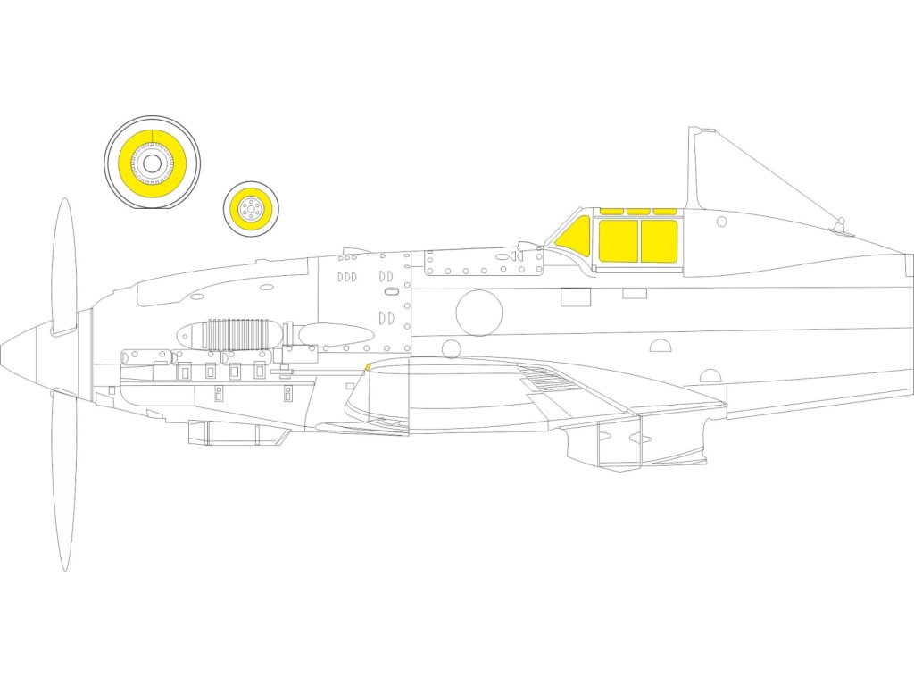 Obojstranná samolepiaca maska čírych dielov a masky kolies pre stavebnicu Eduard 1/48 Messerschmitt Bf 109F, katalógové číslo 200-M48179....