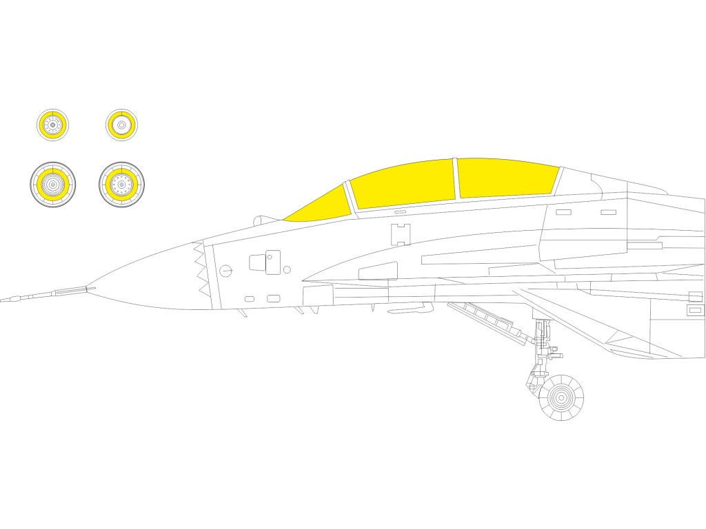 Jednostranná samolepiaca maska 1/48 Messerschmitt Bf 110E z čírych dielov a masky kolies pre stavebnicu Eduard. Katalógové číslo 200-M48189....