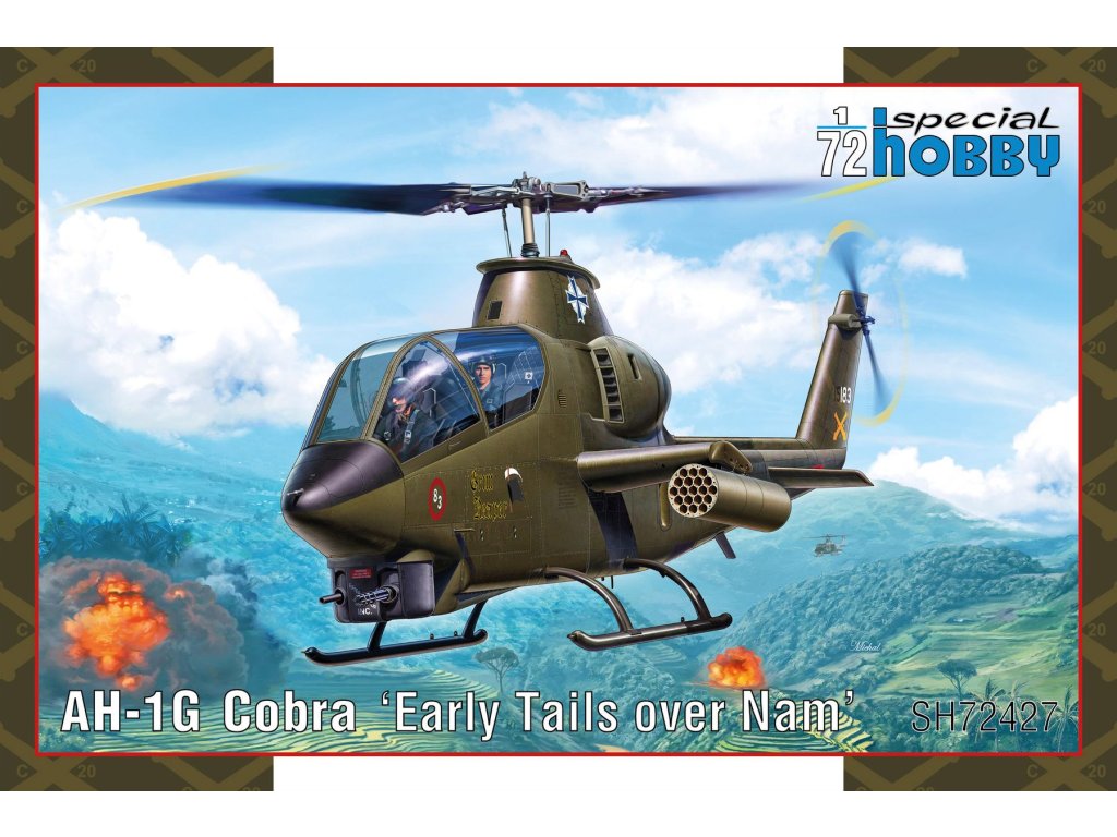 Detailný model amerického bojového vrtuľníka AH-1G Cobra v mierke 1/72 zachytáva rané verzie používané počas vojny vo Vietname. Balenie neobsahuje farby a lepidlo potrebné na zostavenie.