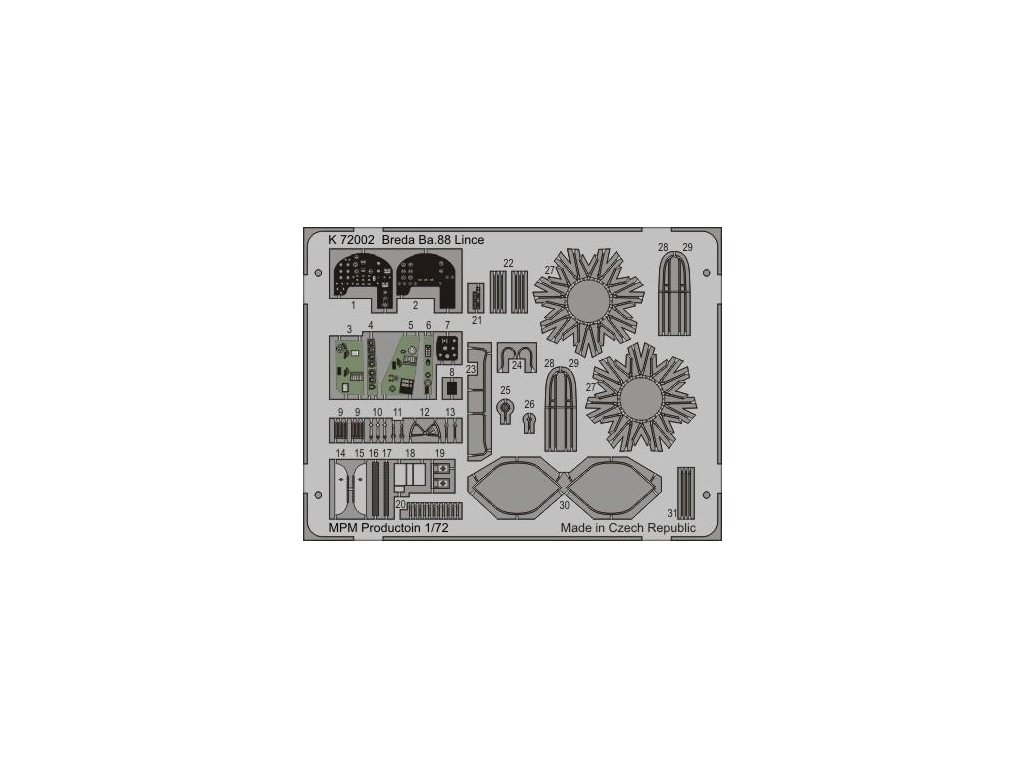 Sada fotoleptaného príslušenstva pre Breda Ba.88 Lince v mierke 1/72 od Special Hobby. Balenie neobsahuje farby ani lepidlo potrebné na montáž.