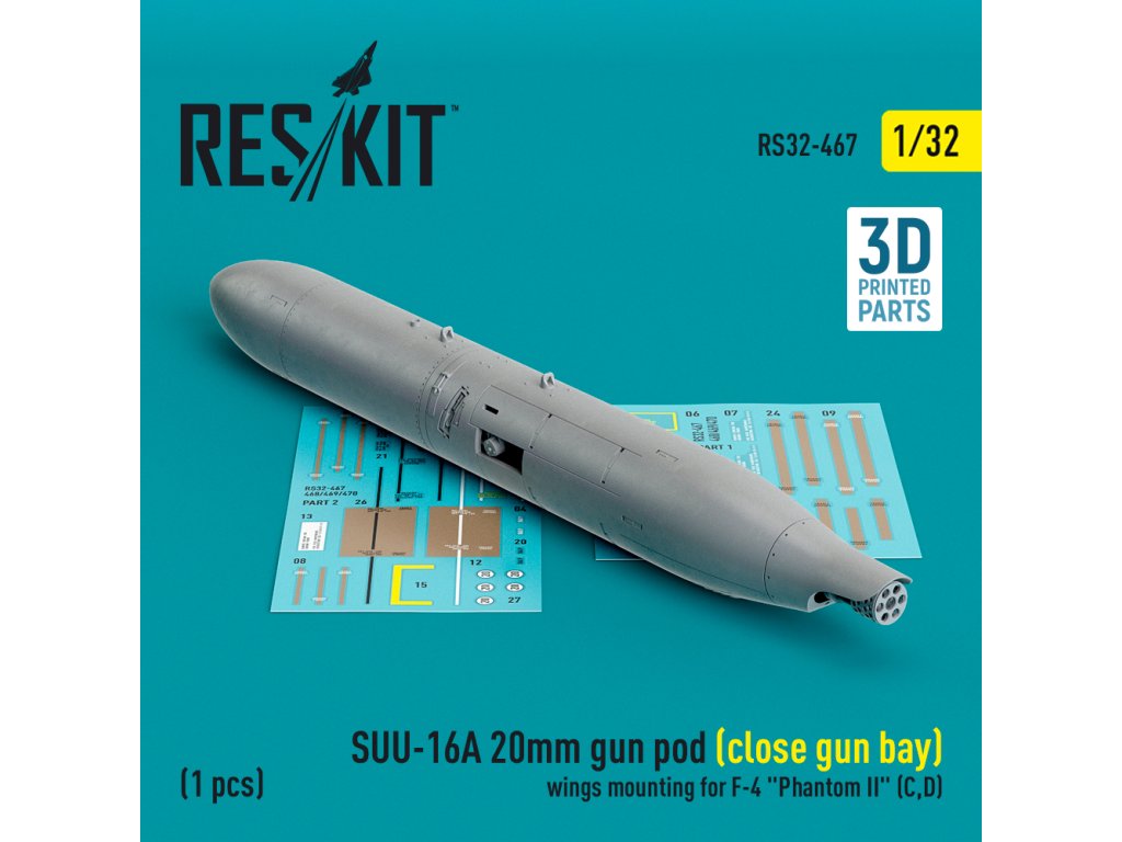 SUU-16A 20mm gun pod (close gun bay) wings mounting for F-4 "Phantom II" (C,D) (1 pcs) (3D Printed)