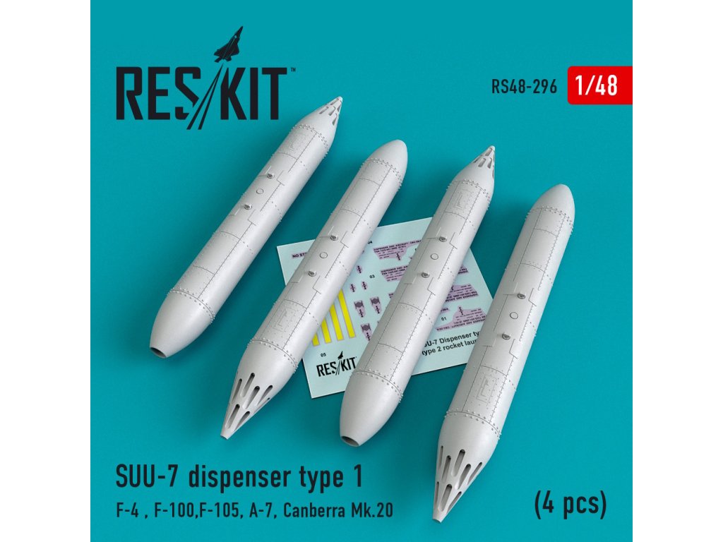 SUU-7 dispensers type 1 (4 pcs) (F-4, F-100, F-105, A-7, Canberra Mk.20) (1/48)