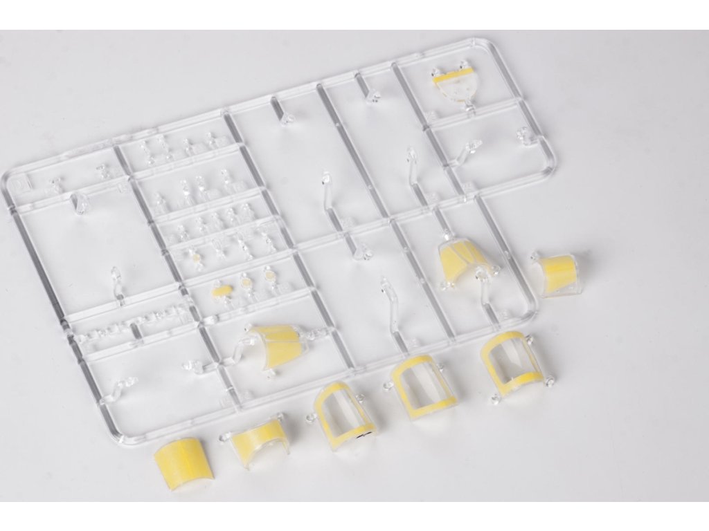 Jednostranná samolepiaca maska z priehľadných dielov a kolies pre stavebnicu Academy 1/48 PV-1 Ventura. Katalógové číslo 200-M48152 Predseknutá...