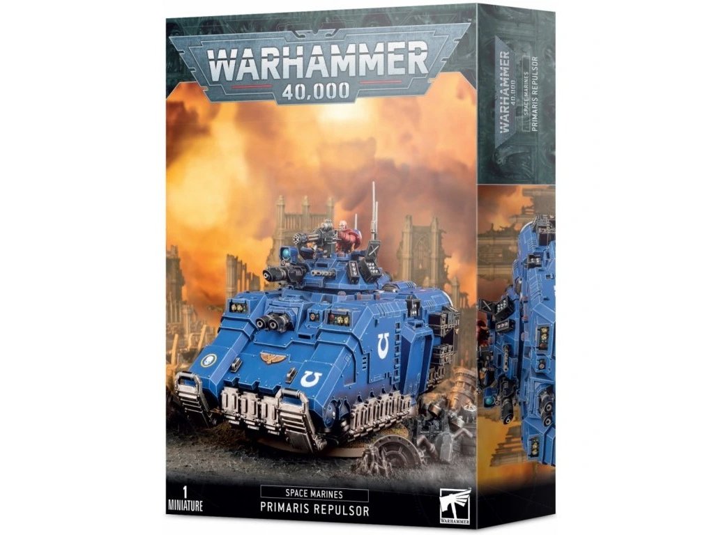 Warhammer 40,000: Space Marines Primaris Repulsor je plastikový model bojového repulsorového tanku Space Marines určený ke slepení. Součástí balení je 1 plastový model Primaris Repulsor s bohatou výzbrojí a možností volby konfigurace: onslaught gatling cannon nebo las-talon ve věži, twin heavy bolter nebo twin lascannon v čele trupu, Icarus irontail heavy stubber nebo onslaught gatling cannon jako pintle-mount, Icarus rocket pod nebo druhý irontail heavy stubber na zádi a dvakrát krakstorm grenade launcher / stormbolter / auto launcher. Stavebnice umožňuje sestavit plně vyzbrojený antigravitační tank vhodný pro hru i sběratelské účely. Balení neobsahuje barvy ani lepidla potřebné k sestavení.